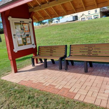 The WYTC bike trail chapter has just completed the building of a memorial consisting of two pavilions across from the West Newton railroad station. The pavilions now have benches placed inside. The key aspect will be the project’s floor, a brick memorial funded by thos