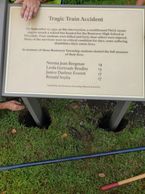 The plaque commemorates the tragic death of four Rostraver high school students killed when a P&LE train locomotive struck their school bus at the intersection of Collinsburg Road and German Street.
